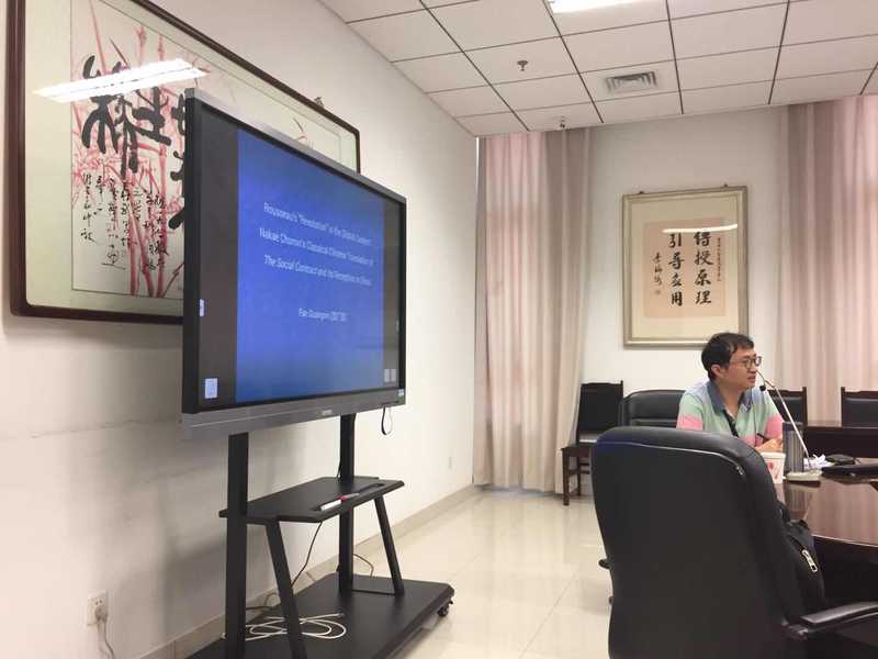 (通讯员:高萌)2019年5月17日,教师系列讲座第六讲在317教室举行。体育365官网教师范广欣做“Rousseau’s‘Revolution’intheGlobalContext:NakaeChomin’sClassicalChineseTranslationofTheSocialContractandItsReceptioninChina”主题报告。本次活动由体育365官网副经理贾江鸿老师主持,体育365官网教师曹钦与会,在读博士生、硕士生与会聆听。该报告是关于中国现代革命概念是如何通过卢梭的《社会契约论》的第一个中文译本产生的。自清末以来,卢梭的社会契约论一直被视为中国革命的福音。例如,最有影响力的汉译本作者何兆武认为,人民的革命权利是卢梭作品中心思想。然而,美国和英国的研究卢梭的主流学者一致认为,卢梭并不支持革命是作为解决社会和政治问题的有效方法。范广欣指出卢梭与革命之间的联系是有争议的,中国人对这种联系的看法源自于他们阅读卢梭的传统,这一传统始于1898年,当时《社会契约论》的第一个中文译本在上海出版。卢梭的《社会契约论》在19世纪80年代首次被翻译成中文,这是由日本儒士、法国归国职工N