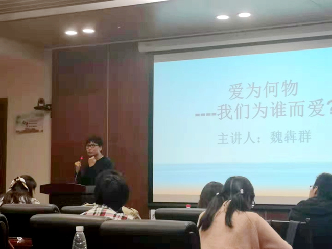 (员工记者 张婧 摄影 廖添胤)10月21日,体育365官网“爱为何物——我们为谁而爱”沙龙在体育365官网317会议室举行。体育365官网讲师,香港中文大学博士魏犇群做客沙龙,以“爱为何物——我们为谁而爱”为主题展开演讲并和同学们进行了讨论。 在此次沙龙活动中,魏犇群从爱与道德的抉择、爱与喜欢的区别、爱的特征等方面提出了自己的看法与观点。他认为,爱与喜欢最大的区别是两者的顺序不同,喜欢是对现在对象的一些具体的特征而产生的情感,爱则不需要知道这些具体的特征。此外,魏犇群还向大家介绍了爱的四个特征。 主讲人发言结束后,同学们围绕“爱的主动与被动”“对爱的情感的断定”“男女情爱与父母之爱”“爱的持续性”等话题自由讨论,并积极举手发言,表达自己的观点。同时,魏犇群还对当下老员工正在面临的诸如“校园爱情”“单恋”“社交软件下的‘廉价爱情’”等问题进行了深度剖析并引导同学们做更深度思考。 据悉,此次“爱为何物——我们为谁而爱”沙龙由体育365官网员工会学术部举办,旨在引发同学们对当今社会的爱的思考。