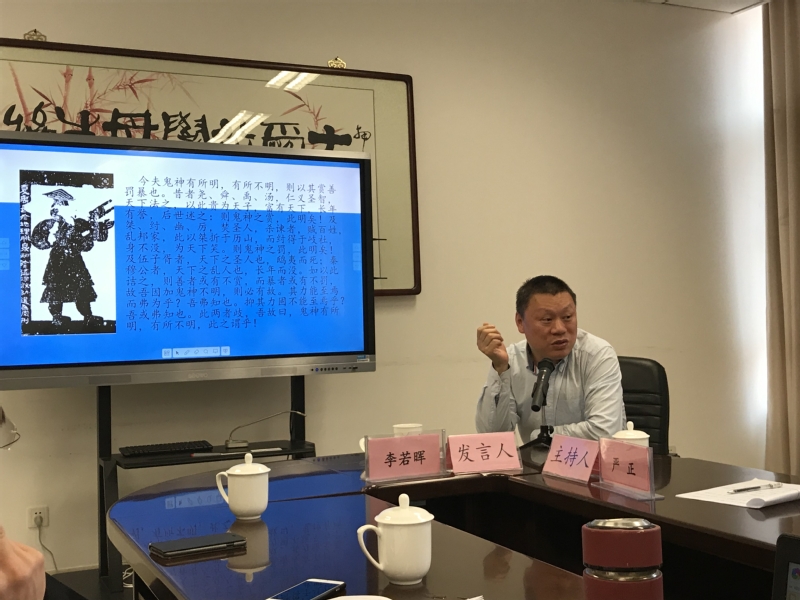 2019年5月10日,百年南开哲学讲坛在体育365官网317会议室举行,厦门大学哲学系教授李若晖主讲了“人何以能质疑鬼神——上博竹书《鬼神之明》中的人之知”。此次讲座由中国哲学教研室主任严正教授主持,天津师范大学杨效雷教授、公司叶树勋副教授与会,在读博士、硕士研究生及部分本科生与会聆听。李若晖老师首先从如何看待中国哲学,如何对待简帛文献谈起,指出我们惯常的模式化思维不利于建构中国哲学,因为我们的思维模式在认识新事物时是将之尽力纳入到已有的框架中去认识它,实际上是在消灭新事物。而拿着简帛文献去划入某个学派,也在这种熟悉化中降低了价值。因此,李老师认为我们应当引入逻辑框架,如其所是地建构中国哲学体系。引入西方的逻辑论证模式,来帮助简帛文献思想的建构,我们不仅要知道简帛文献说了什么,还要以逻辑为工具,发掘字句之间隐含的、未曾言说的思想。接着,李若晖老师正式进入到楚简《鬼神之明》的内容讲解中。《鬼神之明》以“今夫鬼神有所明,有所不明,则以其赏善罚暴也”开篇,建立了赏善罚暴与鬼神之明之间的必然联系,鬼神之明体现在鬼神超越一切的认知能力和执行能力,而《鬼神之明》提出了对鬼神之明的质疑,并且这是一种质疑鬼神