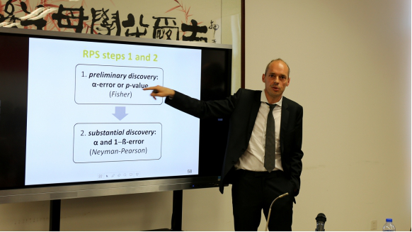 第四届beat365亚洲体育国际人才论坛哲学分论坛于4月12日下午在体育365官网317会议室举行。瑞典隆德大学哲学与认知科学系副教授Dr.FrankZenker为体育365官网师生作了题为“whyreplicationisyourproblem,too”的讲座报告。Dr.Zenker认为人文学者与科学家不同,他们通常引用或依靠他人发表的实验结果。而在社会和行为科学等领域之所以产生这样的结果,是由于无效假设显著性检验(NHST)策略的施行。然而,近来对已发表的实验结果所进行的大规模可重复性检验均以失败告终,这导致了持续的信任危机。Dr.Zenker提出,为克服这种危机,应该采取一种新的研究规划策略(RPS)。这种策略整合了奈曼—皮尔逊检验理论(NPTT)的频率要素和贝叶斯假设检验(BHT)要素,集二者之长并优于二者。该策略从针对随机模型的统计发现到统计验证的假设共有六个步骤。最后,Zenker指出这种方法相较NHST和BHT-结果而言,可以有效地降低错误率,提高可信任度。报告结束后,Dr.Zenker逐一解答了现场提问并与学院师生展开了热烈讨论。Dr.Zenker的报告加深了师生对于当前科学哲学相关前沿问题的理解,